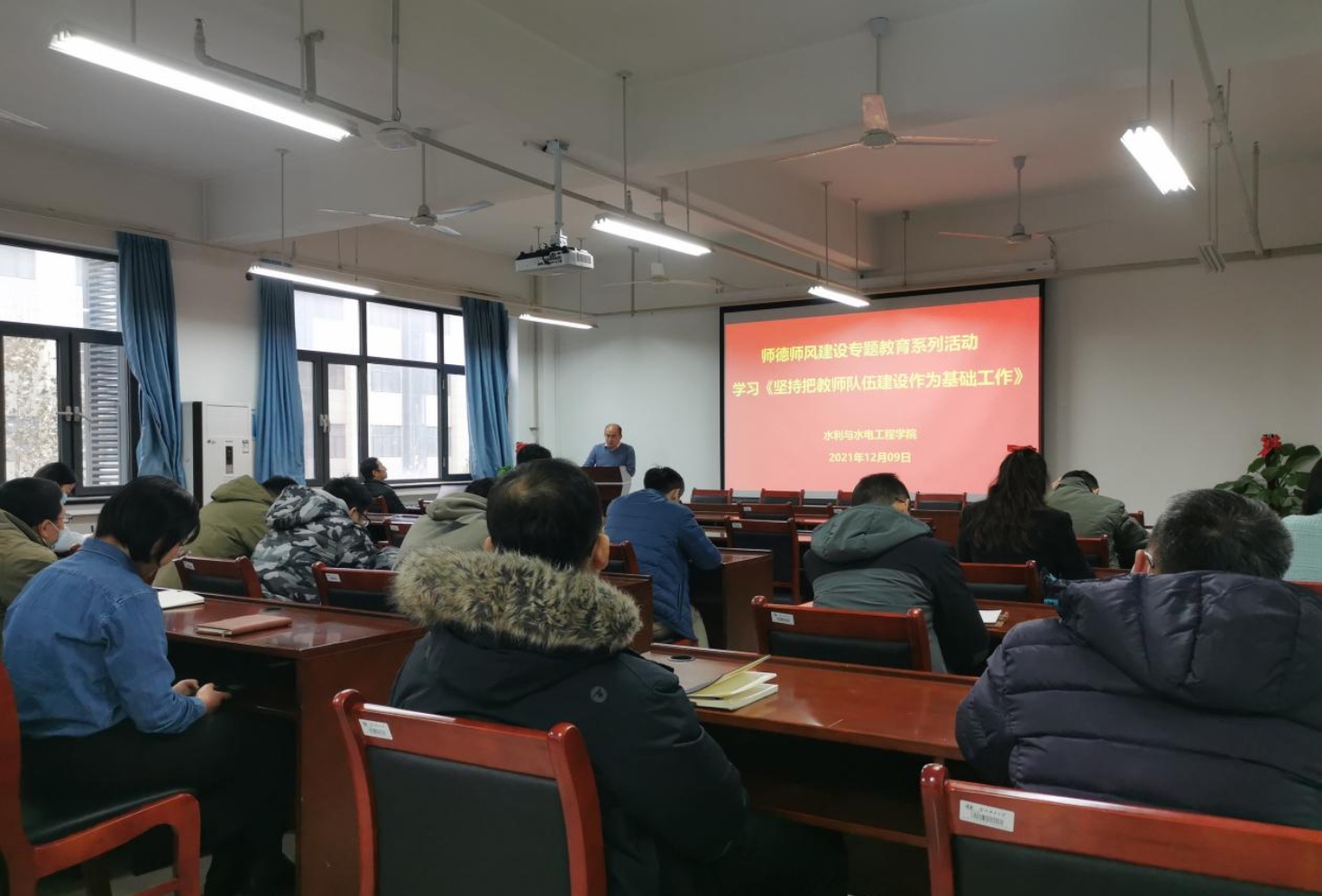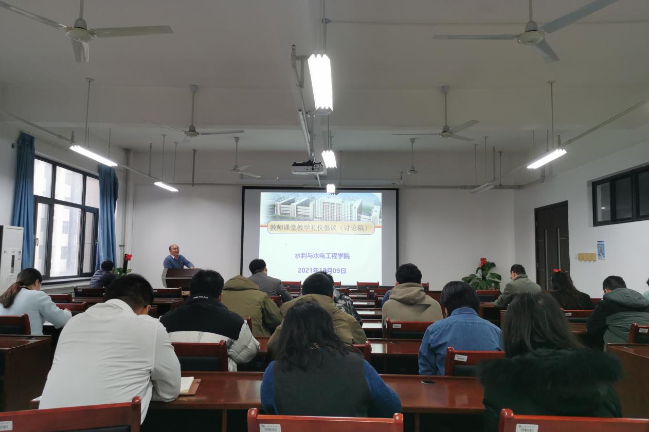 12月9日,女帝 教职工学习《坚持把教师队伍建设作为基础工作》暨教师课堂教学礼仪倡议讨论,学院党委副书记杜广微、副院长王弋、全体教职工参与学习讨论,会议由党委书记刘明军主持。