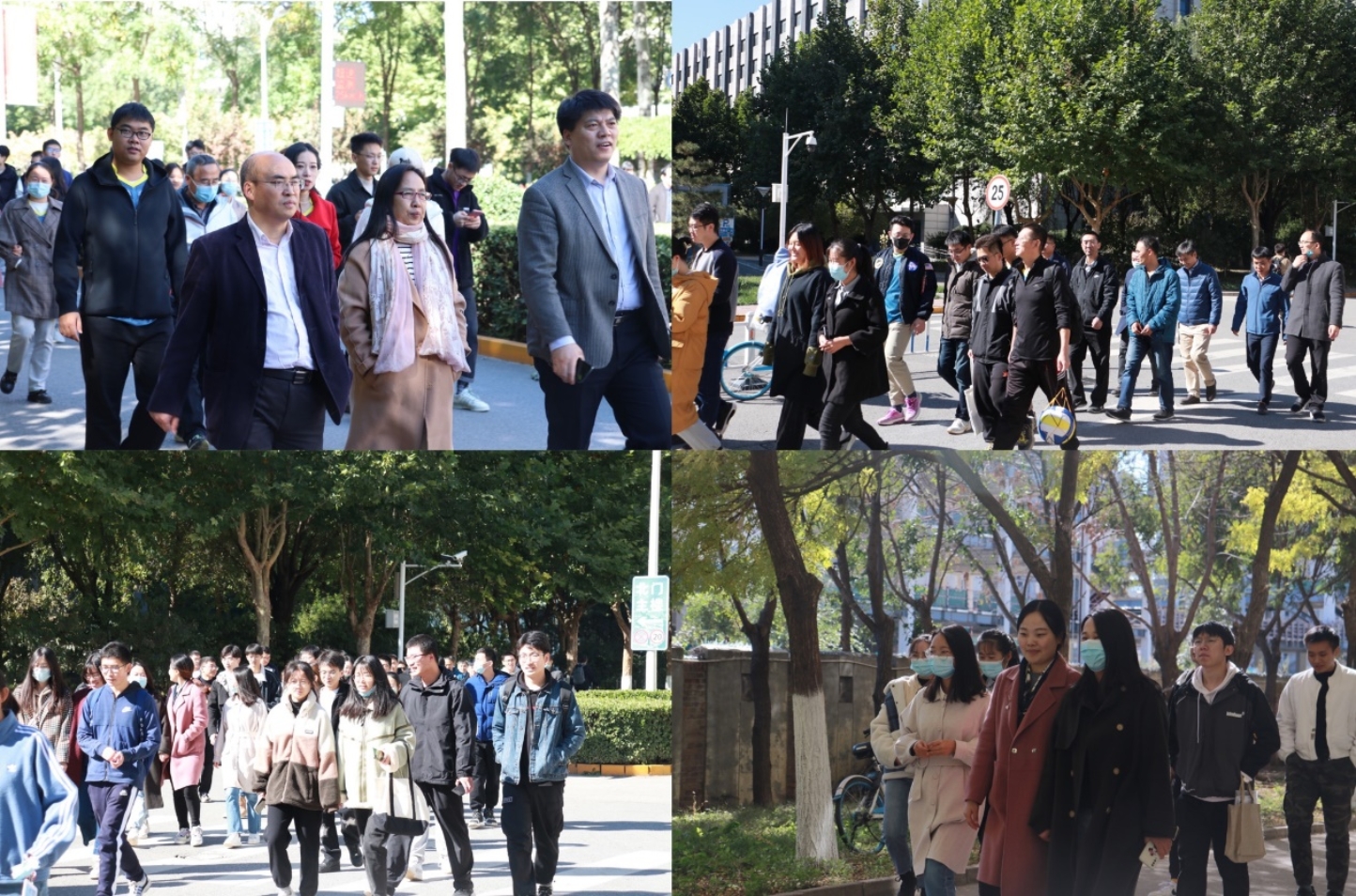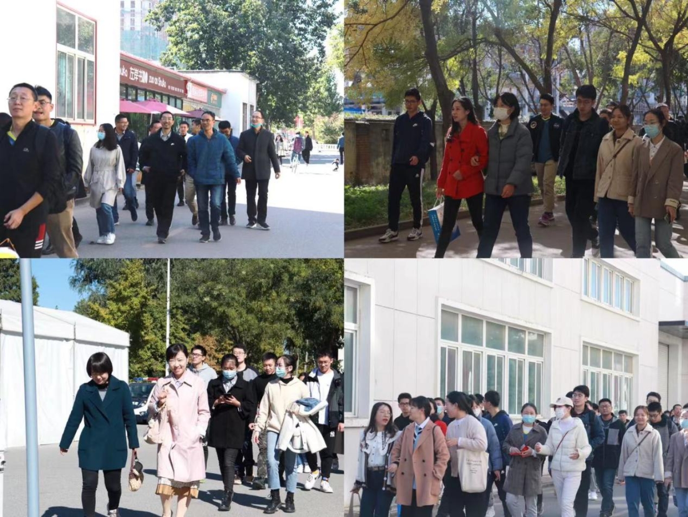参与师生在主楼礼堂东广场集合合影后,健步走活动拉开序幕。“自古逢秋悲寂寥,我言秋日胜春朝”。秋风徐来,大家结伴而行,热情加入“活动队列”,举步校园,一路欢声笑语,其乐融融,开启了一段健身踏秋之旅。