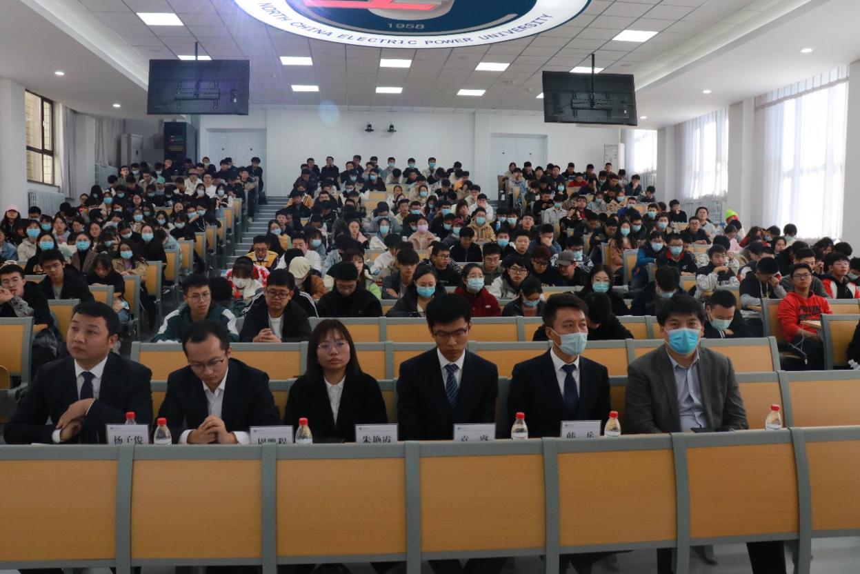 杨子俊结合“团结、勤奋、求实、创新”的华电校训,指出目标导向思维以及团队合作意识对职业发展的重要性,并鼓励同学们深耕学业,培养团队协作能力。同时,他还劝诫同学们应肯定自身的价值,明确自身定位,在今后工作生活中发光发热。