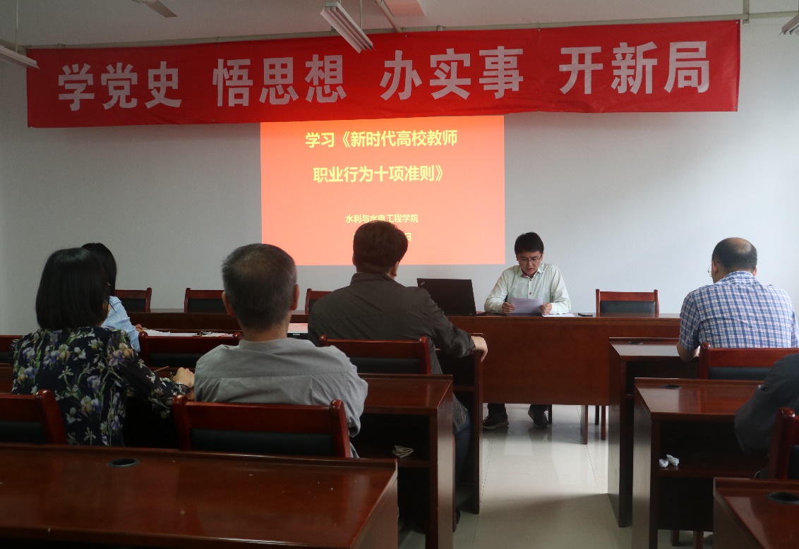 副院长张尚弘带领学院的老师们学习了《教育部关于在教育系统开展师德专题教育的通知》(教师函[2021]3号)和《新时代高校教师职业行为十项准则》两个文件原文。
