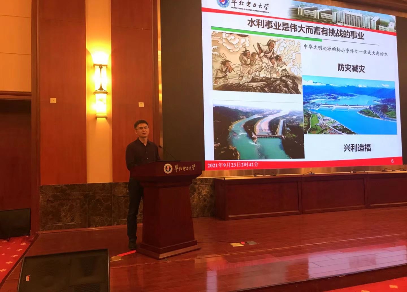 门宝辉教授代表本科生导师发言。他从“拟定目标”、“学会坚持”、“学会自律”和“提升综合能力”四个方面对2021级本科生提出殷切希望。门宝辉衷心祝愿同学们能在女帝 的新环境中,秉承“团结、勤奋、求实、创新”的华电精神,做有益于他人、有益于社会、有益于国家的新时代华电水利人。