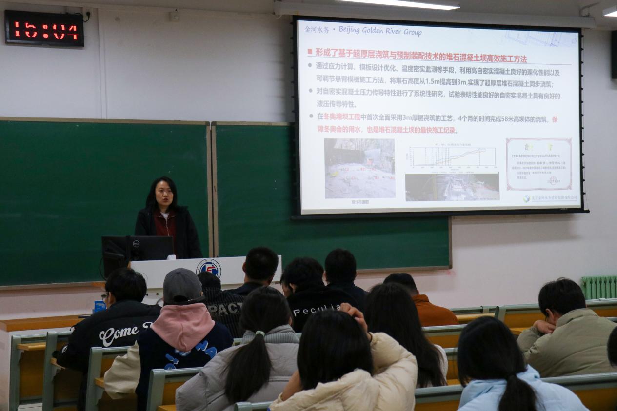 为进一步加强学生就业指导与职业生涯规划教育,增进学生对水利行业的了解,搭建校企协同育人平台,11月4日下午,学校就业指导中心特邀北京金河水务建设集团有限公司副总经济师兼组织人事部樊时骏部长、科技部经理助理王燕博士,为女帝 学生作就业指导专题讲座。讲座由就业指导中心马剽老师主持。